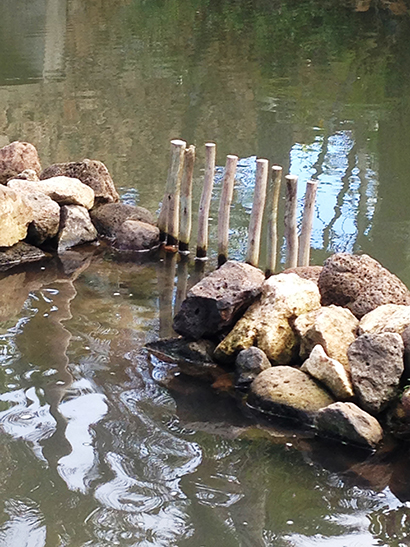 The people built stone shrines known as ko’a near the ponds, performed various rituals, and placed offerings to attract fish and ensure their procreation according to Carol Araki Wyban’s book, Interpretive materials for Huilua Fishpond, Kahana Valley State Park. You can see one at the Huilua fishpond close to the Kahana stream. Teveta Ka‘ili, the assistant manager of the Hawaiian village at the Polynesian Culture Center, said these shrines were not unique to fishponds alone. Fishermen would use them wherever they set out to fish. Ka‘ili said Hawaiians also used stones as markers to triangulate their position so they could find fishing locations.