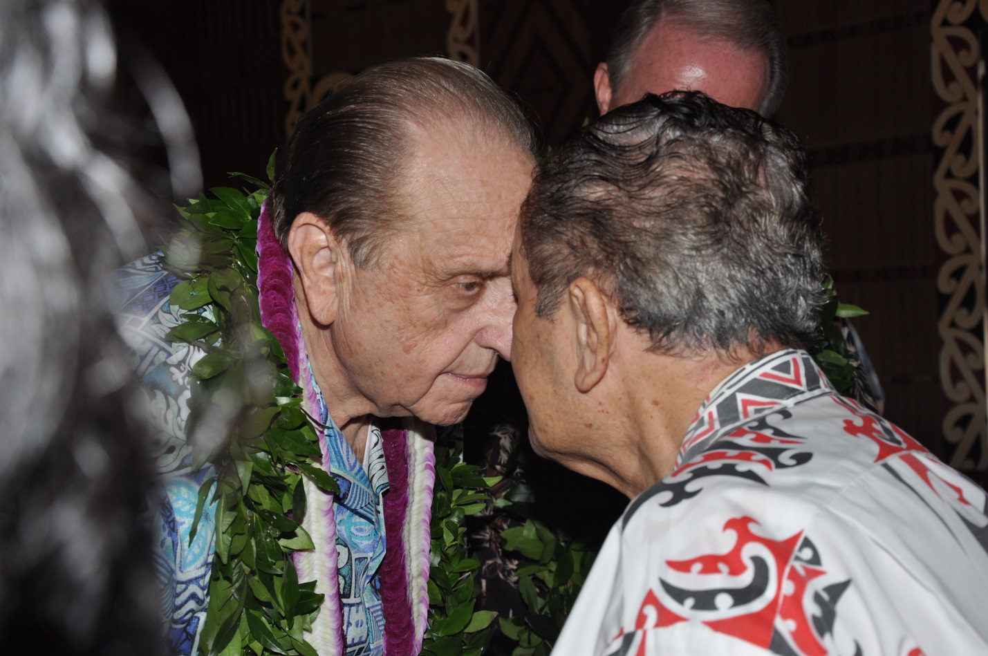 The First Lady of Vietnam and I exchanged a hongi in her last visit to the Polynesian Cultural Center. Through the exchange of this physical greeting, one is no longer considered manuhiri (visitor) but rather tangata whenua, one of the people of the land. It symbolizes that for the remainder of one’s stay one is obliged to share in the duties and responsibilities of the home people.